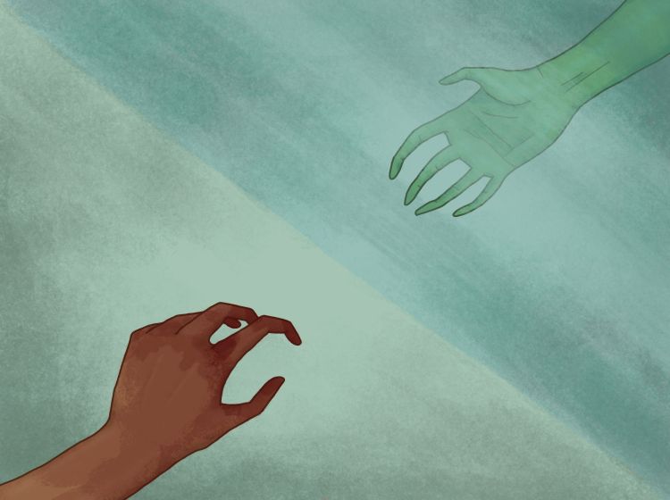 I walk away and immediately feel the full force of an oncoming train smash into me. I crumple to the ground, wind knocked out completely. I can’t help but wail pathetically, clutching at my chest, but hugging myself only makes the pain worse. My bones are splintering, piercing through my muscles and cutting up my hands. I take short, shallow breaths trying to settle my nerves, but a second wave takes me.
