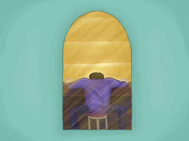 As I get closer I can almost catch the flicker as it changes from the hall to a bar. There’s a guy nursing a drink, and it’s clearly not his first. Wait a minute, I know those bony shoulders. It’s been months and I’m over it but the sight of him makes me so mad I slap my hand against the glass. All it does is send shooting pains up my arm.